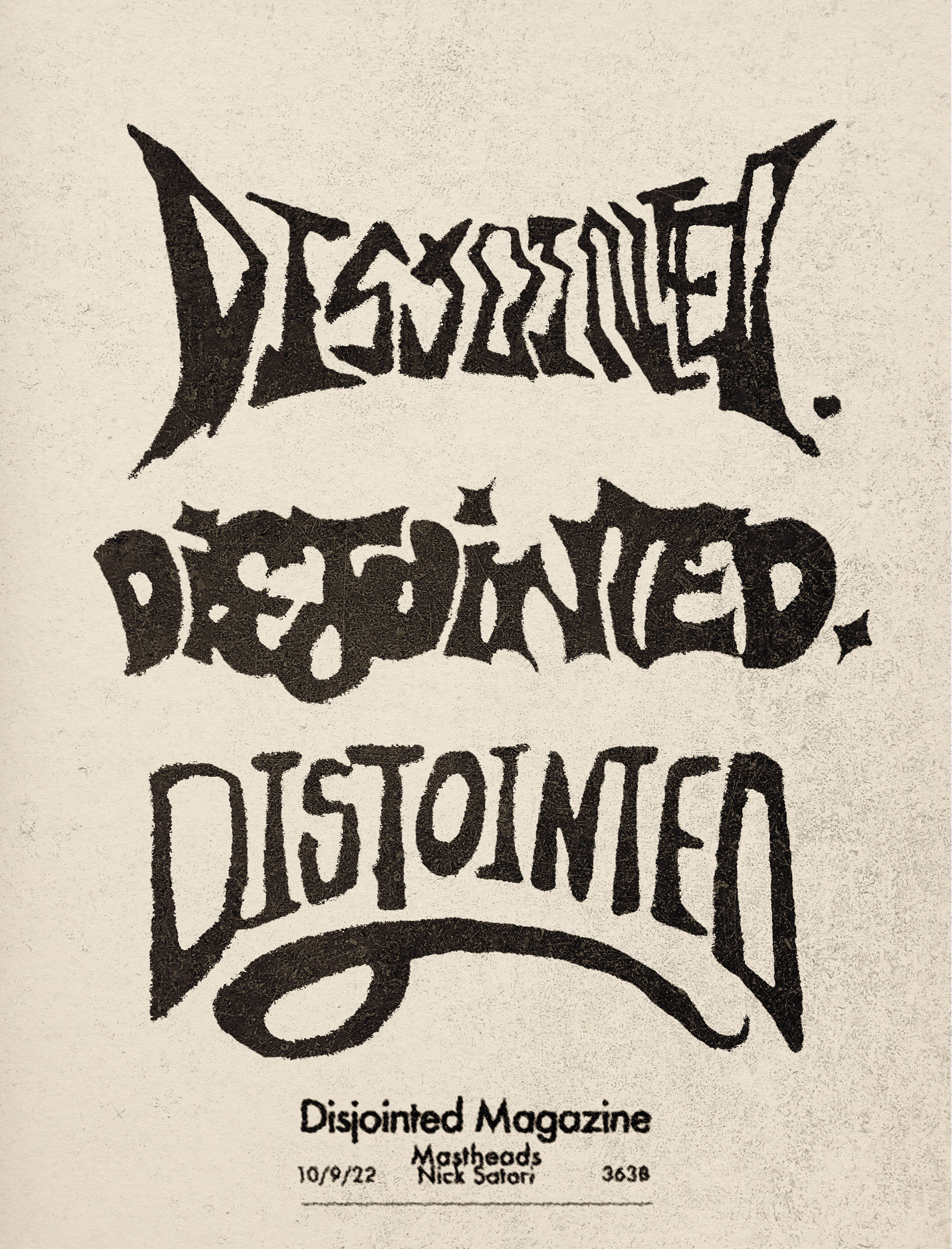 Disjointed Magazine is an action sports magazine designed for the creative fiend involved in action sports, art, and music. This was designed in my 483E class and was all produced by me, with some insie from my teacher, Theron Moore.