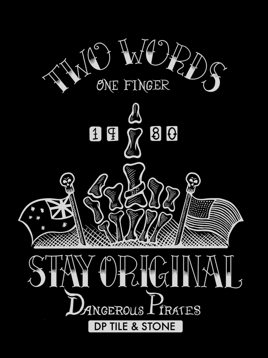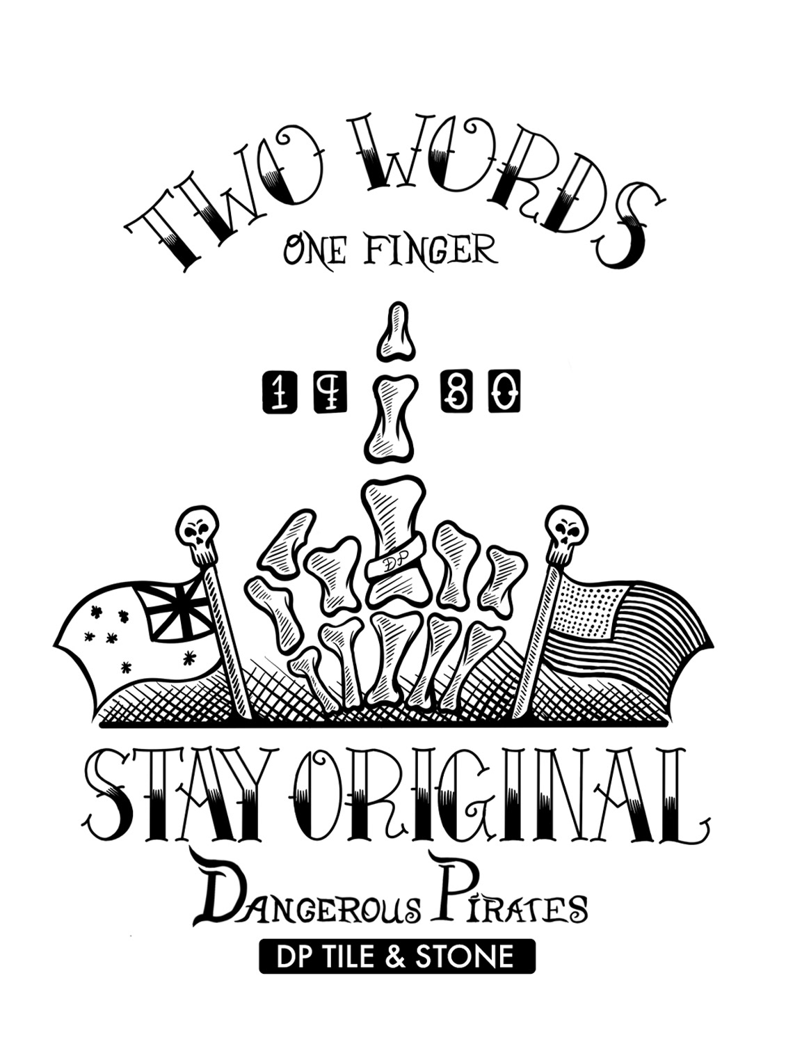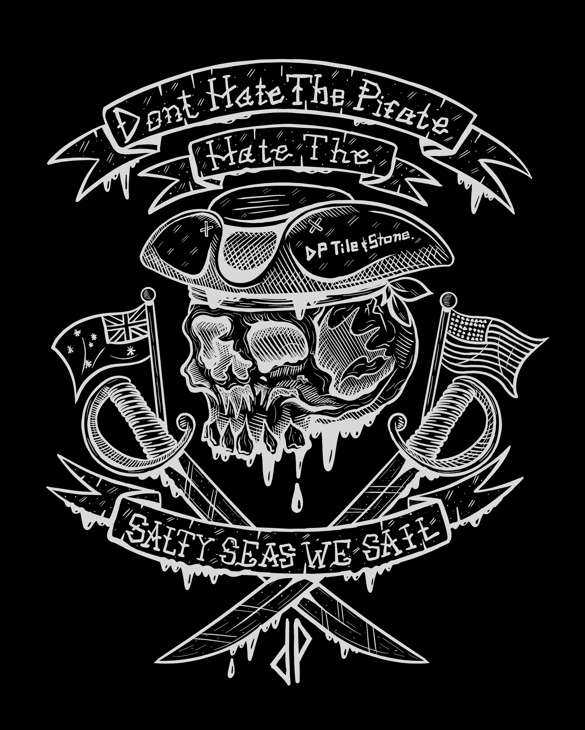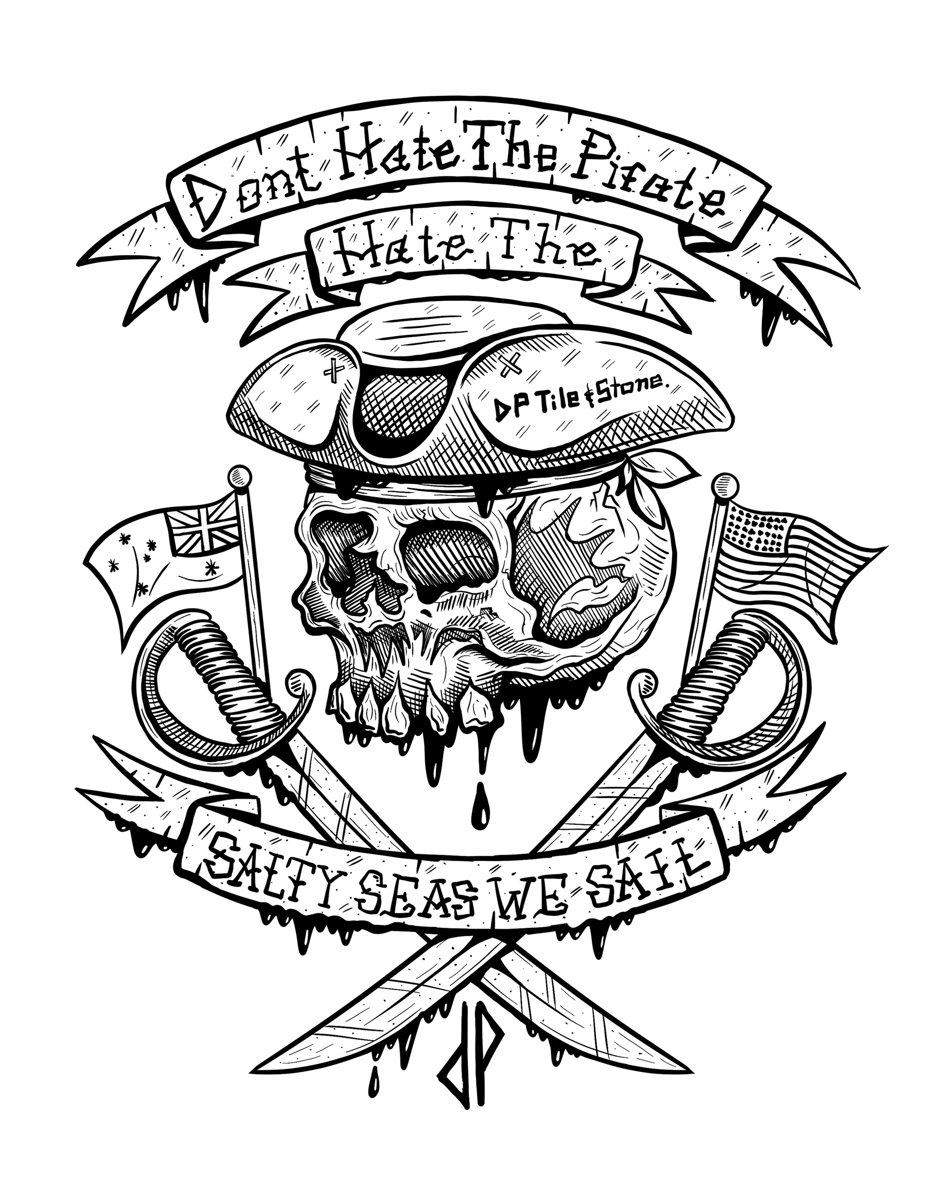 DP Tile and Stone (Dangerous Pirates) Is one of my buddies brands out in Australia. He does contact titling and stone work. I created these assets for merch, on t shirts.
